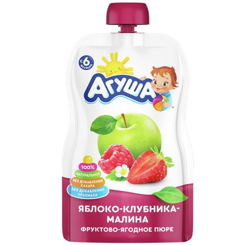 Пюре АГУША яблоко, клубника, малина, 90г в магазинах Авоська