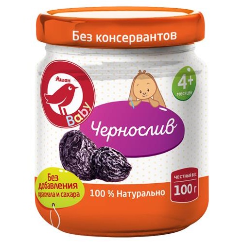 Пюре АШАН Красная птица чернослив с 4 мес., 100 г (kastd) в магазинах Ашан