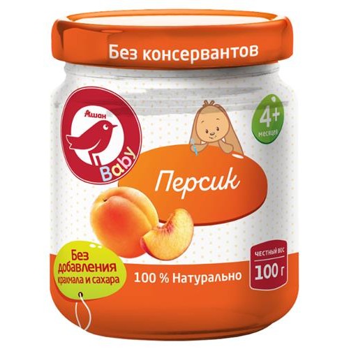 Пюре АШАН Красная птица персик с 4 мес., 100 г (kastd) в магазинах Ашан