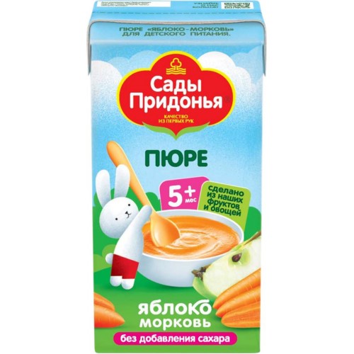 Описание товара: Пюре фруктово-овощное САДЫ ПРИДОНЬЯ Яблоко и морковь - это отличная альтернатива вредным перекусам. Богатое минеральными веществами и органическими кислотами, пюре станет незаменимым помощником в поддержании здорового образа жизни. Благодаря содержанию пектина, клетчатки и витамина С, пюре благотворно влияет на работу желудочно-кишечного тракта и укрепляет иммунитет.