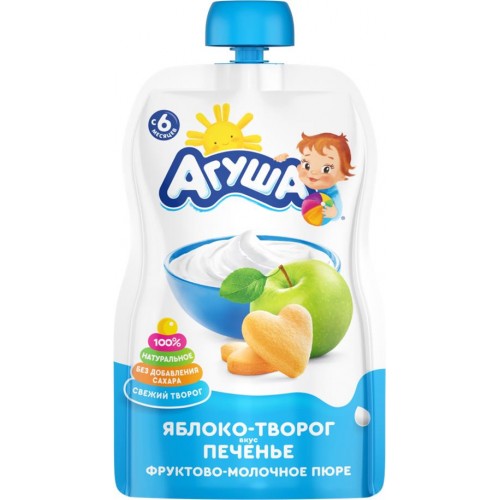 Пюре фруктово-творожное АГУША Яблоко, творог, печенье, с 6 месяцев, 90г в магазинах Лента