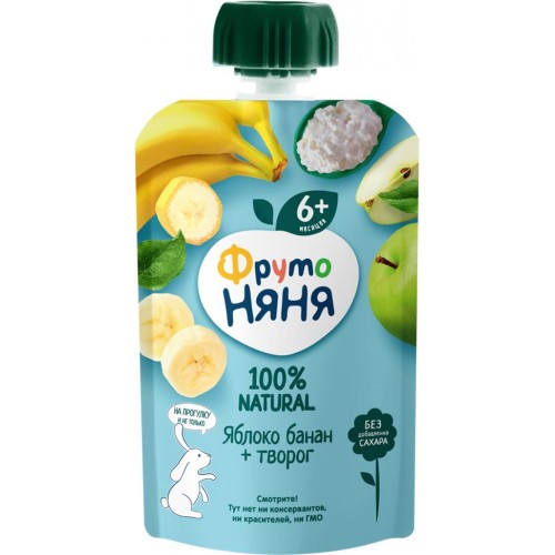 Пюре фруктово-творожное ФРУТОНЯНЯ Яблоко, банан, творог, с 6 месяцев, 90г в магазинах Лента
