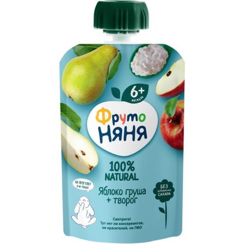 Пюре фруктово-творожное ФРУТОНЯНЯ Яблоко, груша, творог, с 6 месяцев, 90г в магазинах Лента