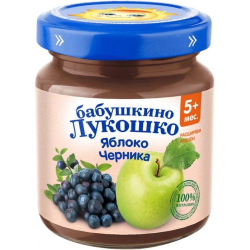 Пюре фруктово-ягодное БАБУШКИНО ЛУКОШКО Яблоко-черника, с 5 месяцев, 100г в магазинах Лента