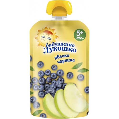 Пюре фруктово-ягодное БАБУШКИНО ЛУКОШКО Яблоко-черника, с 5 месяцев, 90г в магазинах Лента
