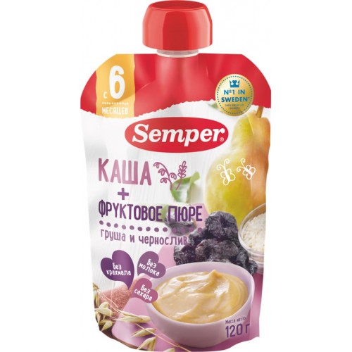 Пюре фруктово-злаковое SEMPER Грушево-черносливовое, с кашей, с 6 месяцев, 120г в магазинах Лента