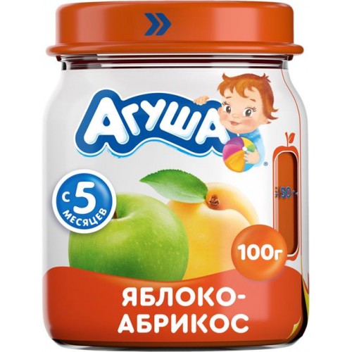 Пюре фруктовое АГУША Яблоко и абрикос, с 5 месяцев, 100г в магазинах Лента