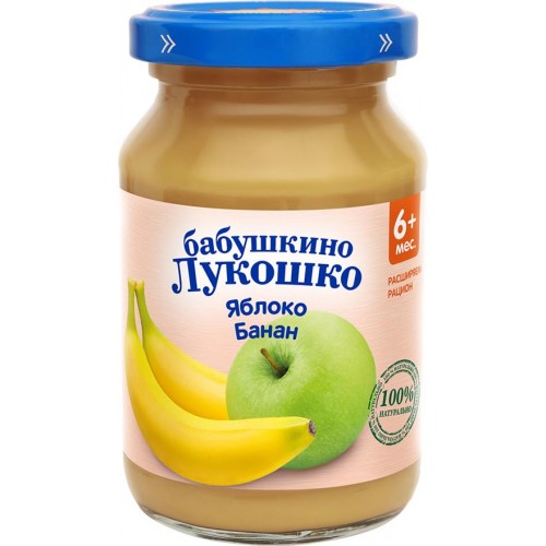 Пюре фруктовое БАБУШКИНО ЛУКОШКО Яблоко и банан, с 6 месяцев, 190г в магазинах Лента