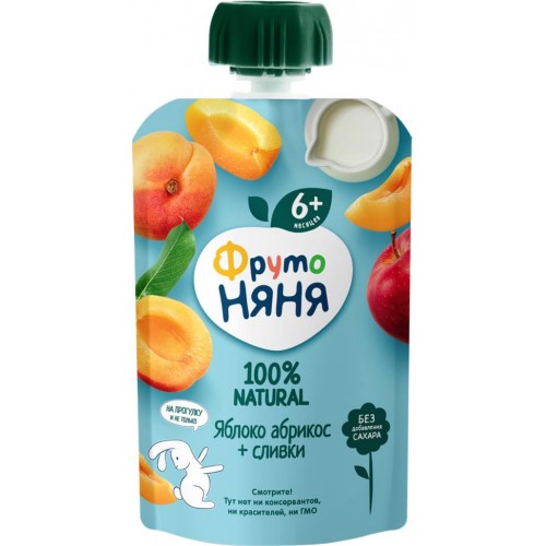 Пюре фруктовое ФРУТОНЯНЯ Яблоко, абрикос со сливками, с 6 месяцев, 90г в магазинах Лента