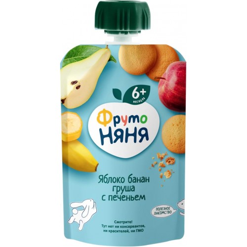 Пюре фруктовое ФРУТОНЯНЯ Яблоко, банан и груша, с печеньем, с 6 месяцев, 90г в магазинах Лента
