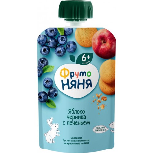 Пюре фруктовое ФРУТОНЯНЯ Яблоко и черника, с печеньем, с 6 месяцев, 90г в магазинах Лента