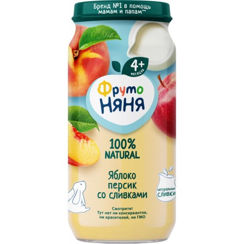Пюре фруктовое ФРУТОНЯНЯ Яблоко, персик со сливками, с 6 месяцев, 250г в магазинах Лента