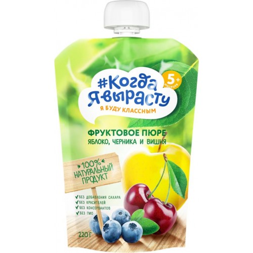 Пюре фруктовое КОГДА Я ВЫРАСТУ Яблоко, вишня и черника, с 5 месяцев, 220г в магазинах Лента