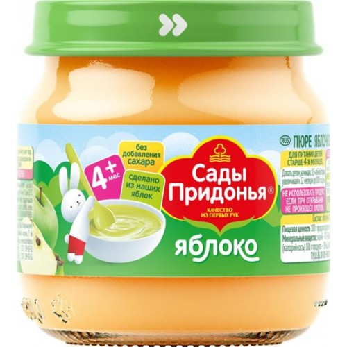 Пюре фруктовое САДЫ ПРИДОНЬЯ Яблоко, с 6 месяцев, 80г в магазинах Лента