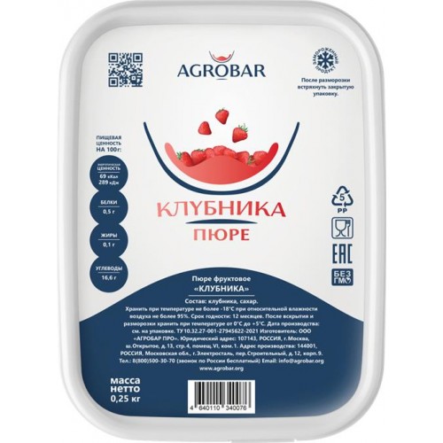 Пюре фруктовое замороженное АГРОБАР ПРО Клубника, 250г в магазинах Лента