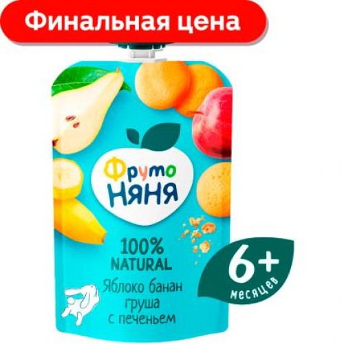 Пюре Фрутоняня из яблок с бананом грушей и печеньем 90г в магазинах Магнит