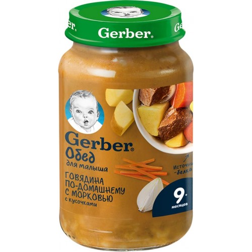 Подарите своему малышу здоровье и силы с помощью пюре мясоовощного GERBER Говядина По-Домашнему с Морковью!
