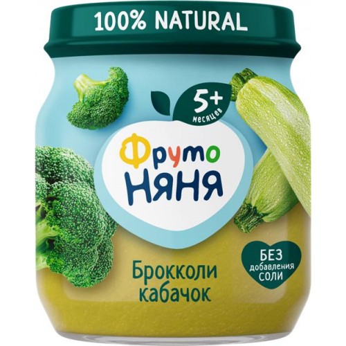 Пюре овощное ФРУТОНЯНЯ Капуста брокколи и кабачок, с 5 месяцев, 110г в магазинах Лента