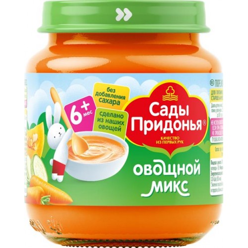 Пюре овощное Сады Придонья Овощной микс - это отличный выбор для малышей в возрасте от 6 месяцев! Изготовленное из натуральных ингредиентов - моркови, тыквы и кабачков, наше пюре обладает нежным вкусом и мягкой текстурой, что делает его легким для усвоения.