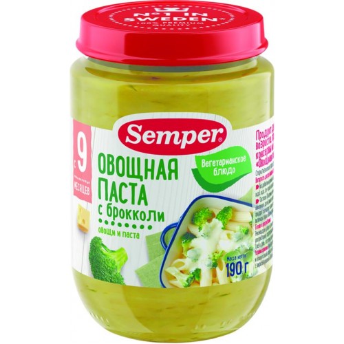 Пюре овощное SEMPER Овощная паста с брокколи, с 9 месяцев, 190г в магазинах Лента