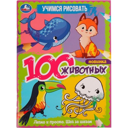 Раскраска УМКА 100 животных. Учимся рисовать. 64 страниц, А4 в магазинах Лента