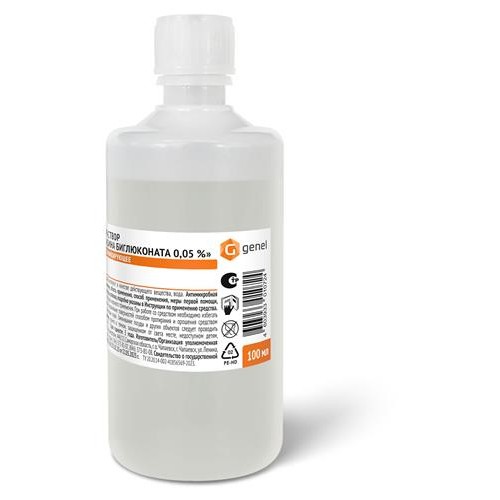 Хлоргексидина биглюконат 20%-2,5г,вода очищенная-1л. вода 99,95%
