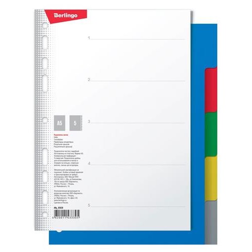 Разделитель листов Berlingo А5, 5 листов (kastd) в магазинах Ашан