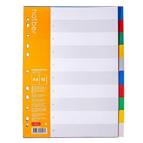 Разделители пластиковые Хатбер А4 10 цветов, 10 листов (kastd) в магазинах Ашан