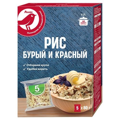 Рис АШАН Красная птица бурый и красный, 400 г (kastd) в магазинах Ашан
