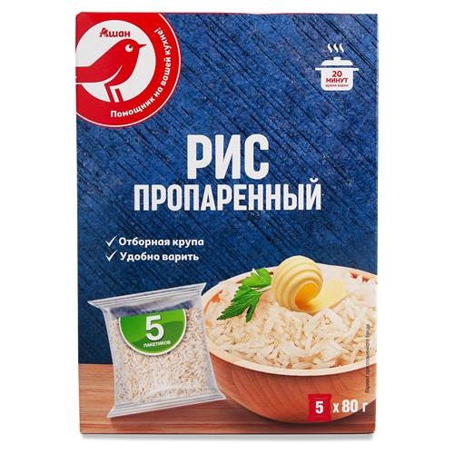 Рис АШАН Красная птица пропаренный для варки в пакетиках, 5х80 г (kastd) в магазинах Ашан