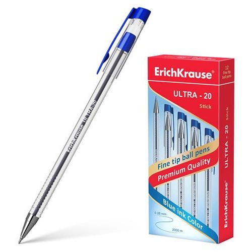 Ручка шариковая ErichKrause Ultra-20 Stick Classic, синяя, 1 шт (kastd) в магазинах Ашан
