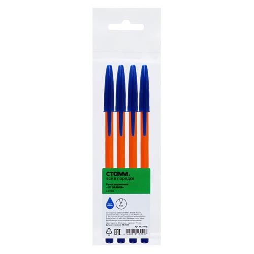 Ручка шариковая Стамм Orange синяя 1 мм, 4 шт (kastd) в магазинах Ашан