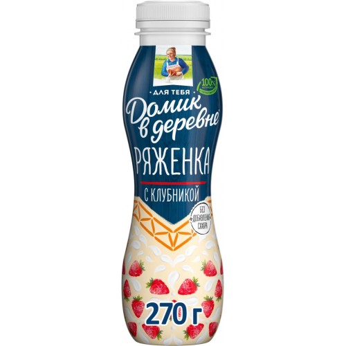 Ряженка ДОМИК В ДЕРЕВНЕ Клубника 2,1%, без змж, 270г в магазинах Лента