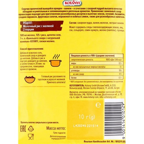 Представляем вам изысканный и ароматный продукт – ванильный сахар KOTANYI. Это идеальное сочетание натуральных стручков тропической вьющейся орхидеи ванили и сахара высшего качества.