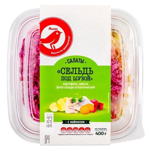 Салат АШАН Красная птица Сельдь под шубой, 400 г (kastd) в магазинах Ашан