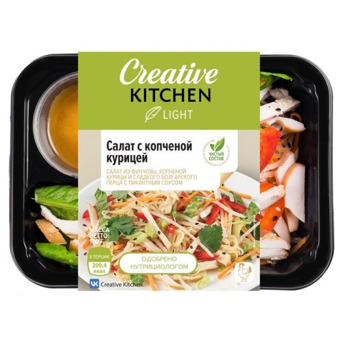 Салат Creative Kitchen из фунчозы и копченого куриного филе с овощами, 170 г (kastd) в магазинах Ашан