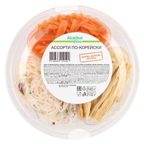 Салат из маринованных овощей Каждый день Ассорти по-корейски со спаржей, 240 г (kastd) в магазинах Ашан