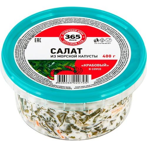 Салат из морской капусты 365 ДНЕЙ Крабовый в соусе с ароматом краба, 400г в магазинах Лента