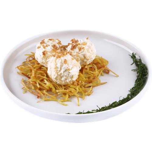 Картофель, Яйцо, сыр ( молоко, мезофильные молочнокислые микроорганизмы, соль, уплотнитель Е509, консерванта Е351, сычужного фермент), Майонез (масло подсолнечное, регулятор кислотности Е260, крахмал кукурузный, яичный желток сухой, загустители (Е412,Е415), соль, консерванты (Е200, Е385), ароматизатор, подсластители (Е950,Е951), краситель каротин), Филе куриное, масло растительное, лук сухой жареный, Чеснок, петрушка. Содержит источник фенилаланина. .Дата и время изготовления указаны на доп.этикетке. Кул. изделие. Продукт готов к употреблению.