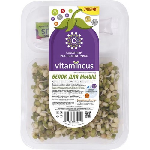 Салатный ростковый микс Vitamincus - это высококачественный продукт, богатый белком, витаминами, микроэлементами и абсорбентами. Он идеально подходит для людей, которые ценят свое здоровье и заботятся о своем весе.