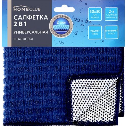 Салфетка универсальная HOMECLUB 30х30см, 2в1, микрофибра, фольгированная нить в магазинах Лента