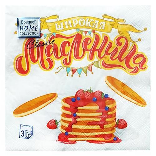 Салфетки бумажные одноразовые трехслойные Широкая масленница ЗЗхЗЗ см, 20 шт (kastd) в магазинах Ашан
