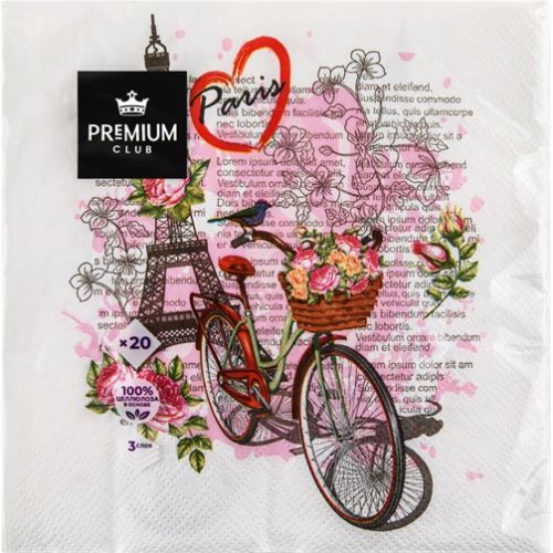 Салфетки бумажные PREMIUM CLUB Для любимой 3-слоя 33х33см, 20шт в магазинах Лента