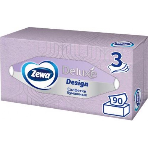 Салфетки бумажные в коробке Zewa Deluxe Дизайн 3 слоя 90шт в магазинах Магнит