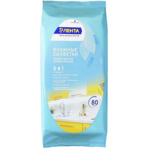 Салфетки хозяйственные ЛЕНТА влажные, универсальные 6в1, 80шт в магазинах Лента
