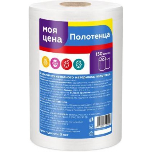 Салфетки Моя Цена рулон 20*25см 150л в магазинах Магнит
