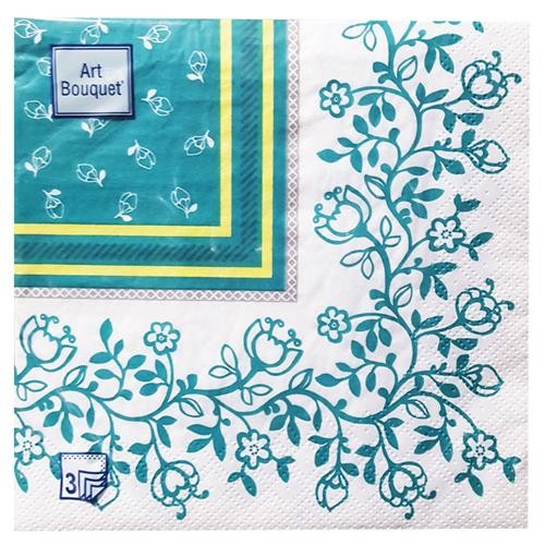 Салфетки одноразовые бумажные Bouquet трехслойные 33х33 см Зеленый орнамент барокко, 20 шт (kastd) в магазинах Ашан