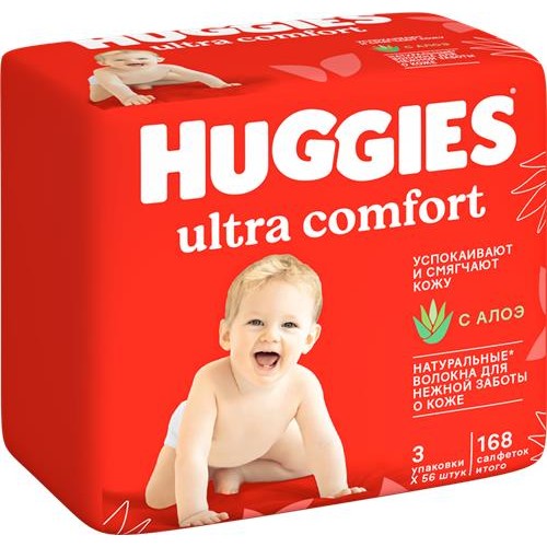 Салфетки влажные детские HUGGIES Ultra Comfort с алоэ, 168шт в магазинах Лента