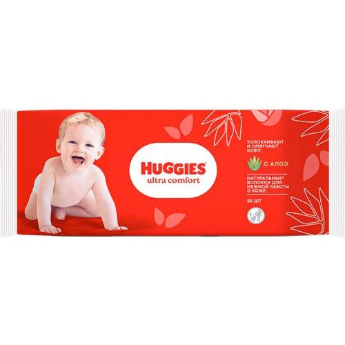 Салфетки влажные детские HUGGIES Ultra Comfort с алоэ, 56шт в магазинах Лента