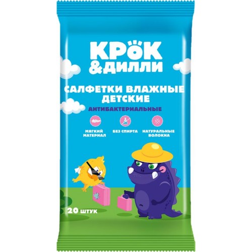 - Антибактериальные салфетки для детей КРОК&ДИЛЛИ бережно очищают и увлажняют кожу.